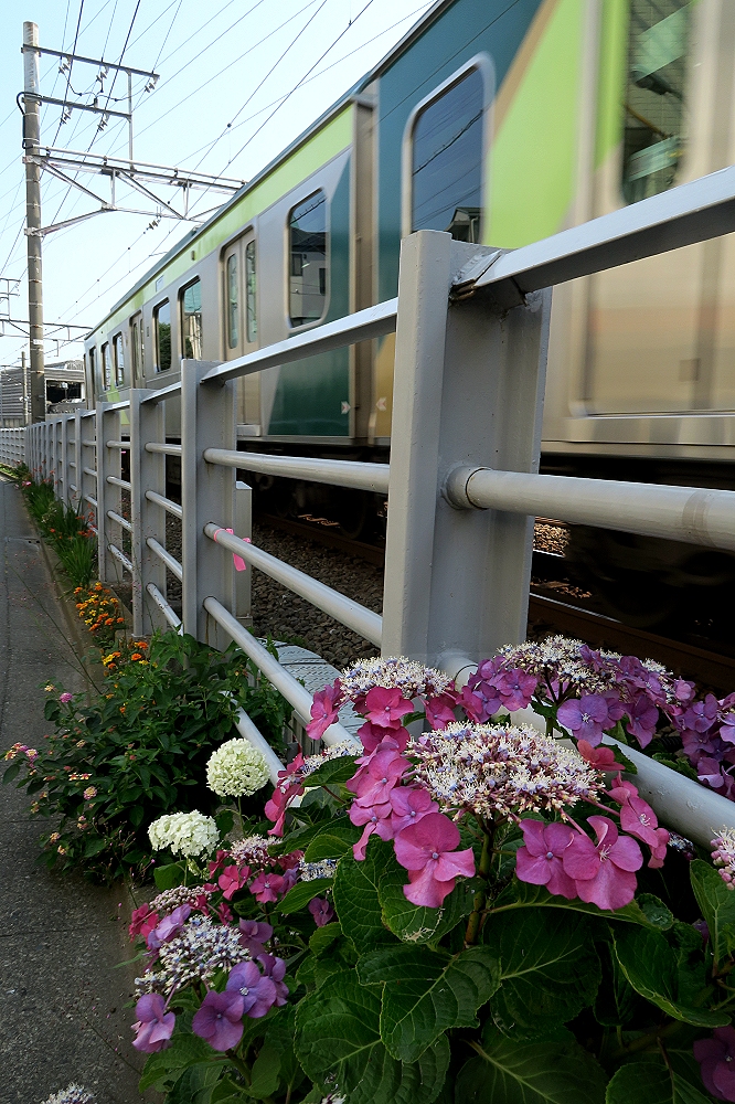 引きで撮るとわかるんですが、赤い陸橋の上を高圧線が通っています。