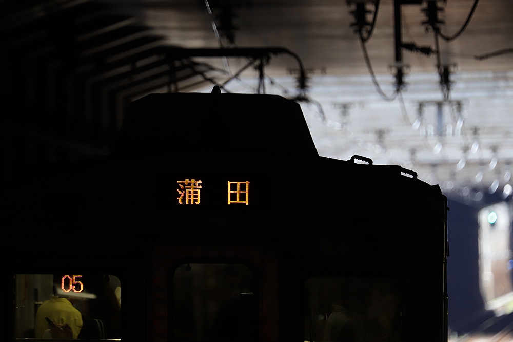 蒲田より出発していく多摩川行き7906F。左側へカーブしていくのが多摩川線。