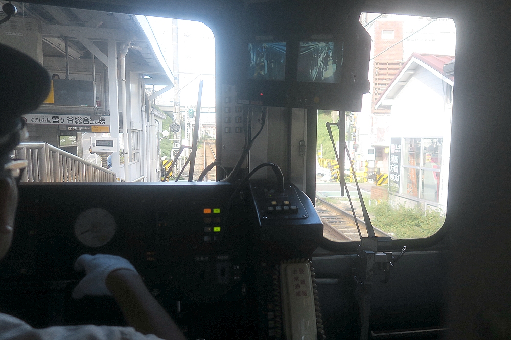 運転台にはワンマン運転ならではのホームモニターが据え付けてありました。