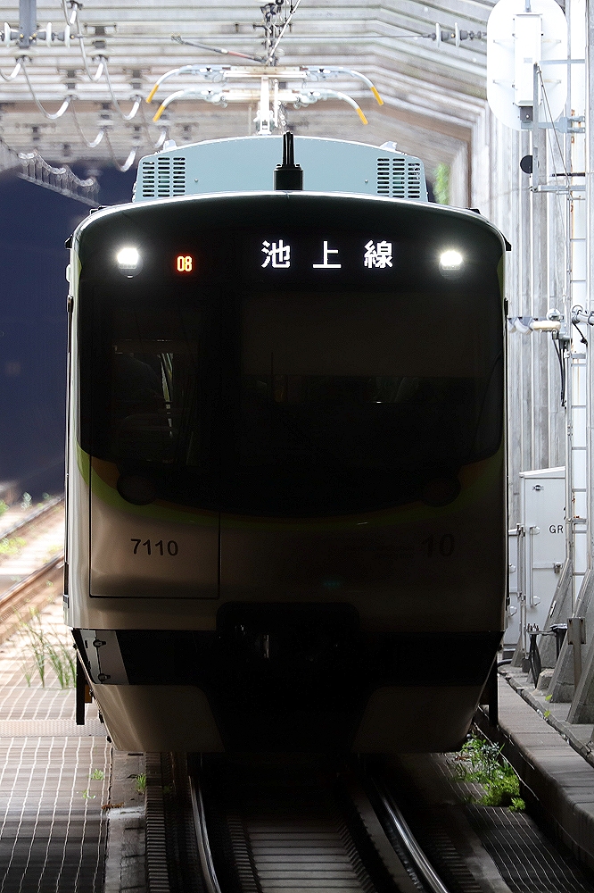 この丸っこいフォルムの新7000系って緑色が似合いますのぉ♪ やっぱアマガエル意識してんかな?
