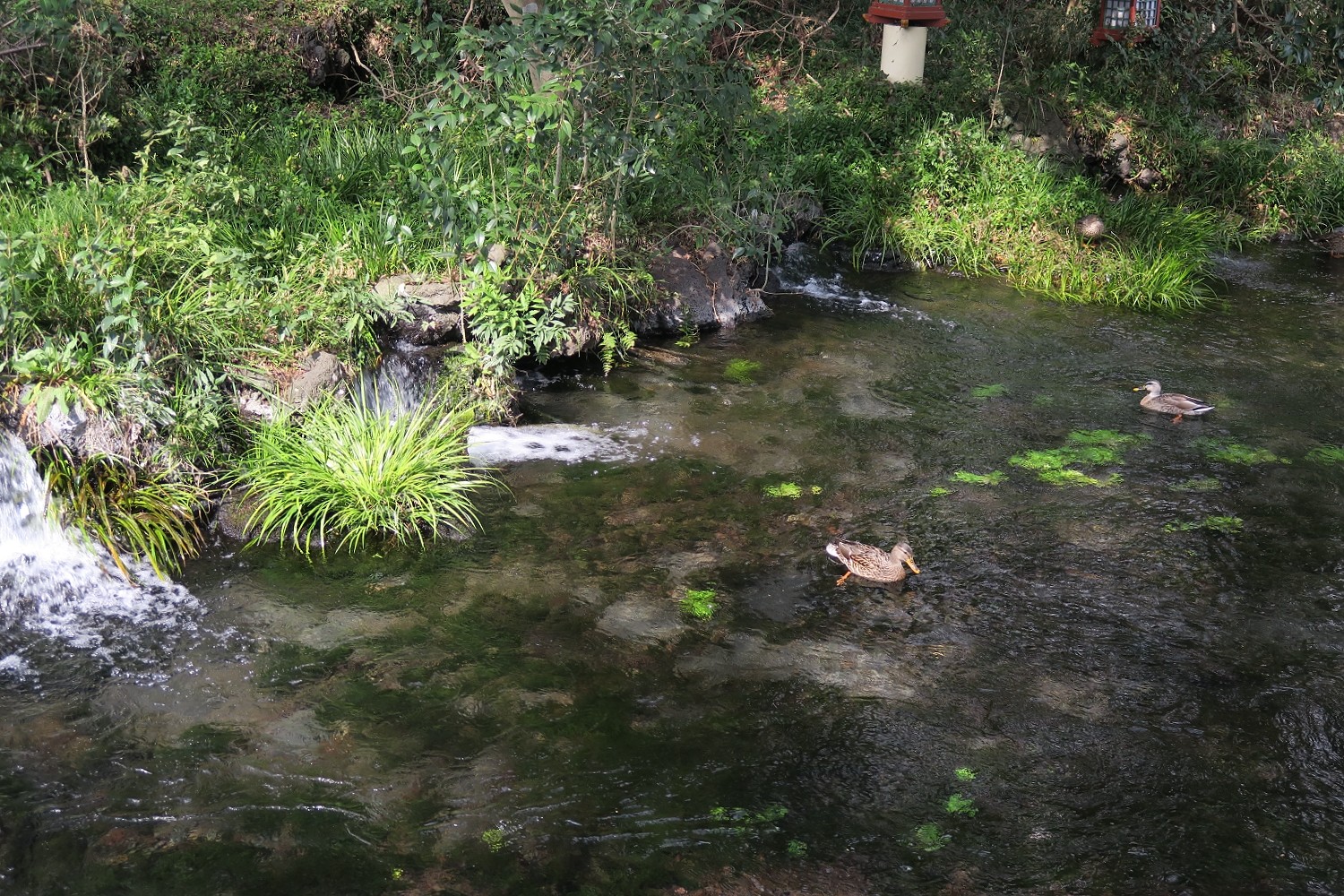 池底には水草が茂っています。清らかです♪