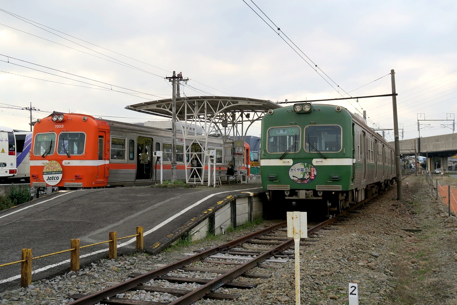 終点、岳南江尾駅。 ~新幹線と富士山が見える駅~