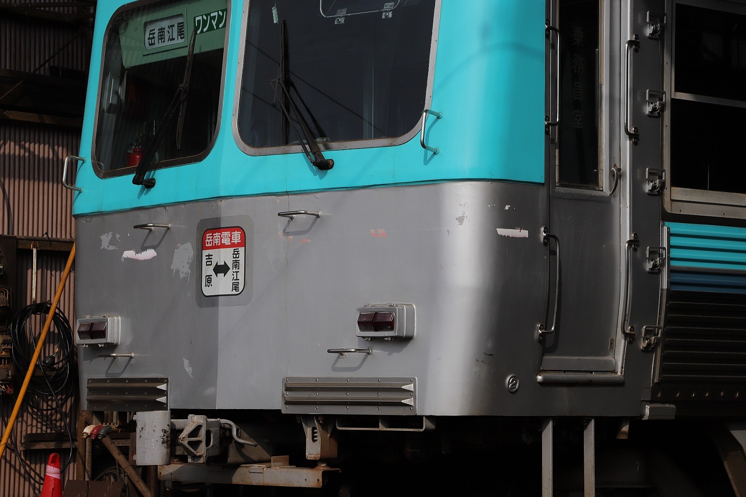 岳南7000形は前面を新たに新製しています。その際に尾灯は京王5000系の表示灯を流用したので角型になっていたのでした!