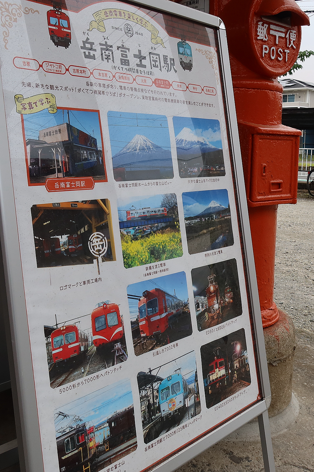 【岳南富士岡駅】うしろの丸ポストはレトロ演出で後付けオブジェ。