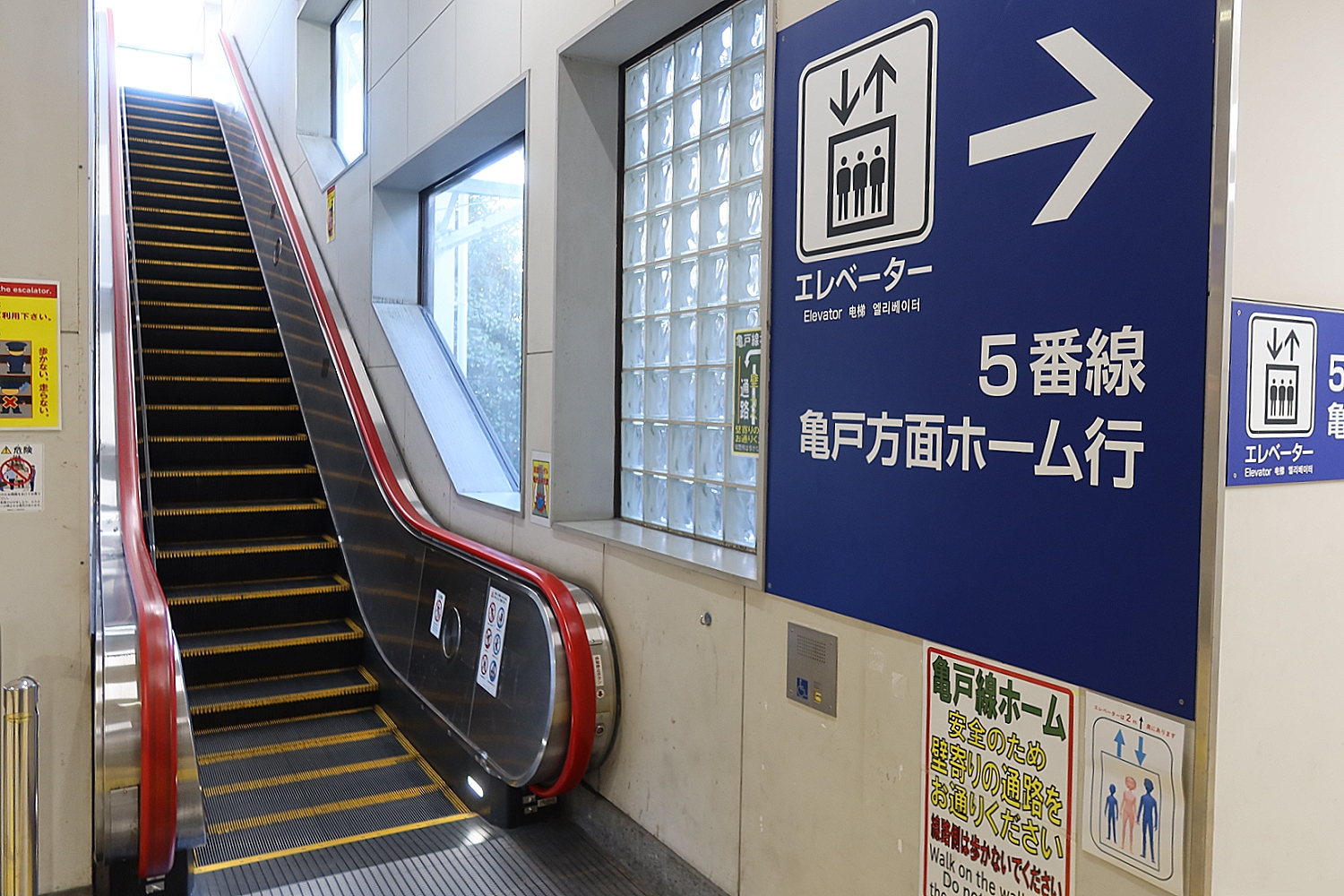 曳舟駅のエスカレーターは赤手すり! やっぱエスカレーターといえば赤でしょ♪