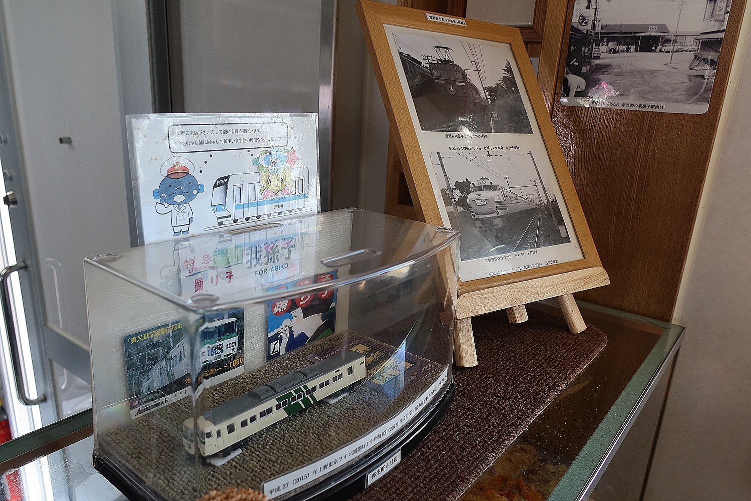 PS: 前回の我孫子駅@3・4番線ホームにある弥生軒@5号店のカウンターに仕込まれていた鉄的展示はエメラルドグリーン@103系でした。。。