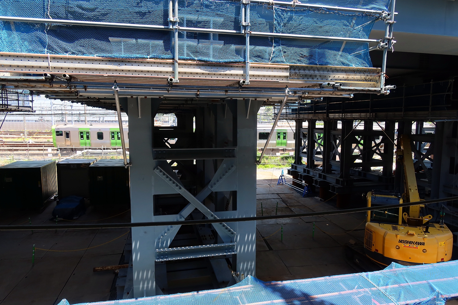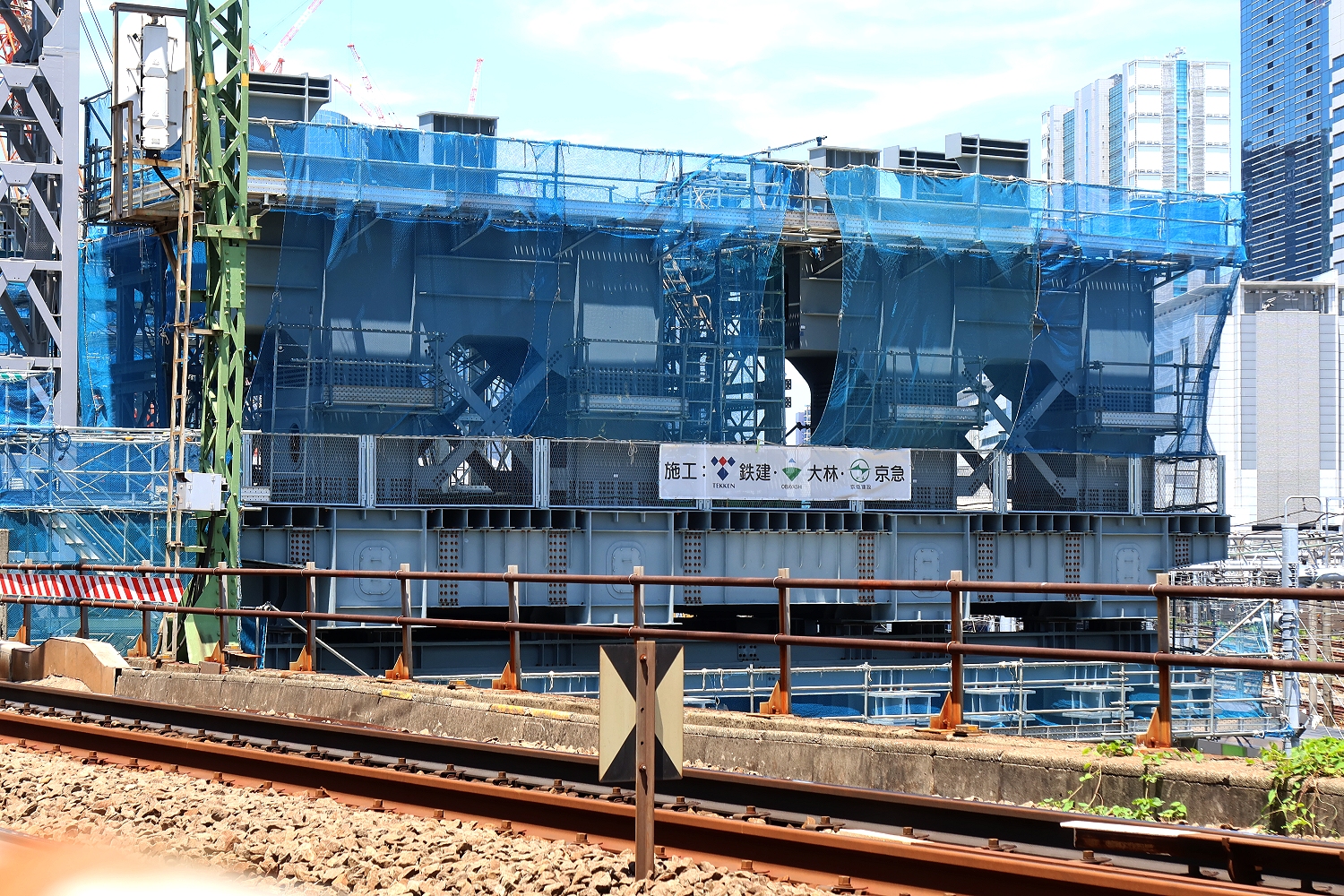 脇にでっかい架設構台。。。JRを一気にまたぐ新八ツ山橋@架橋のカラクリだったりします。