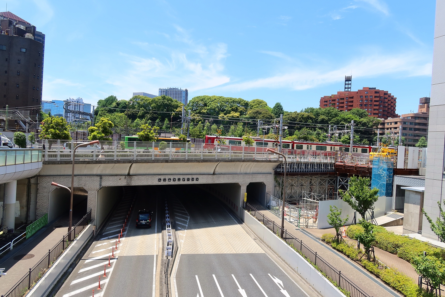 都営地下鉄浅草線に接続する泉岳寺駅へ潜っていく姿が見渡せます♪