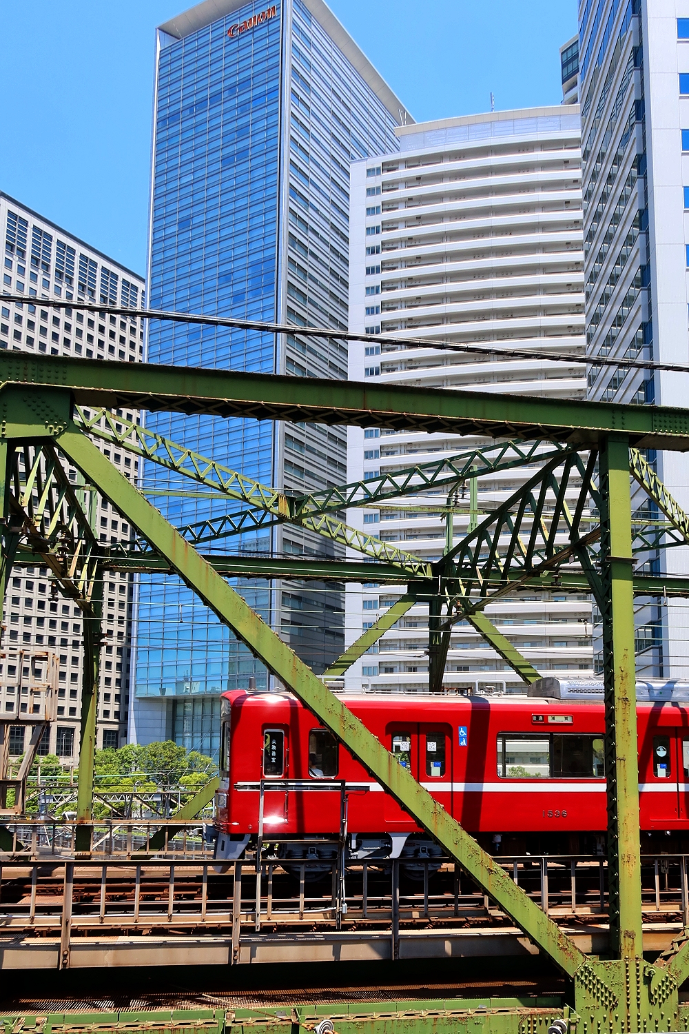 八ツ山鉄橋越しのキャノンSタワー。