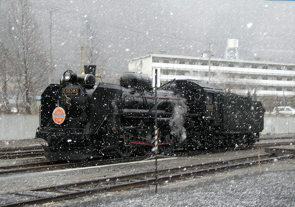 ホワイトクリスマスとなった水上。ちょっと小柄なC58が恥ずかしそぉに雪を纏って・・・イィ♡