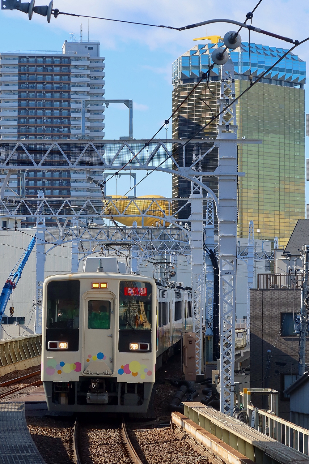 浅草側ホーム端で見上げるスカイツリーは美しい♪