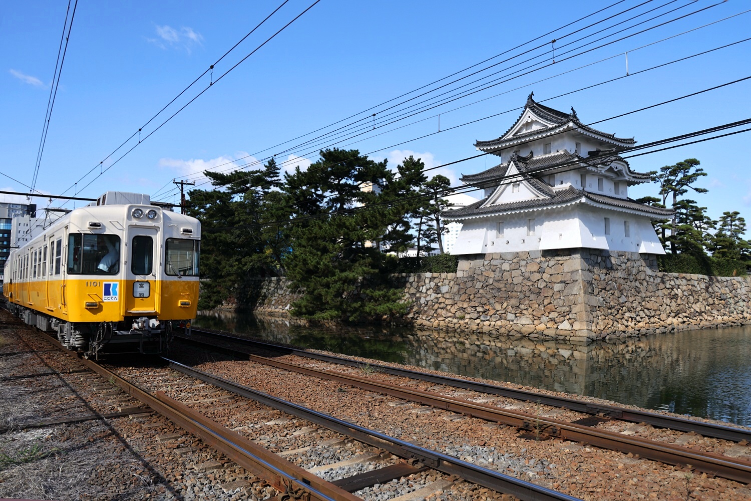 お堀端に敷かれた【ことでん】 『城好き』にはタマラン♡シチュエーションです。