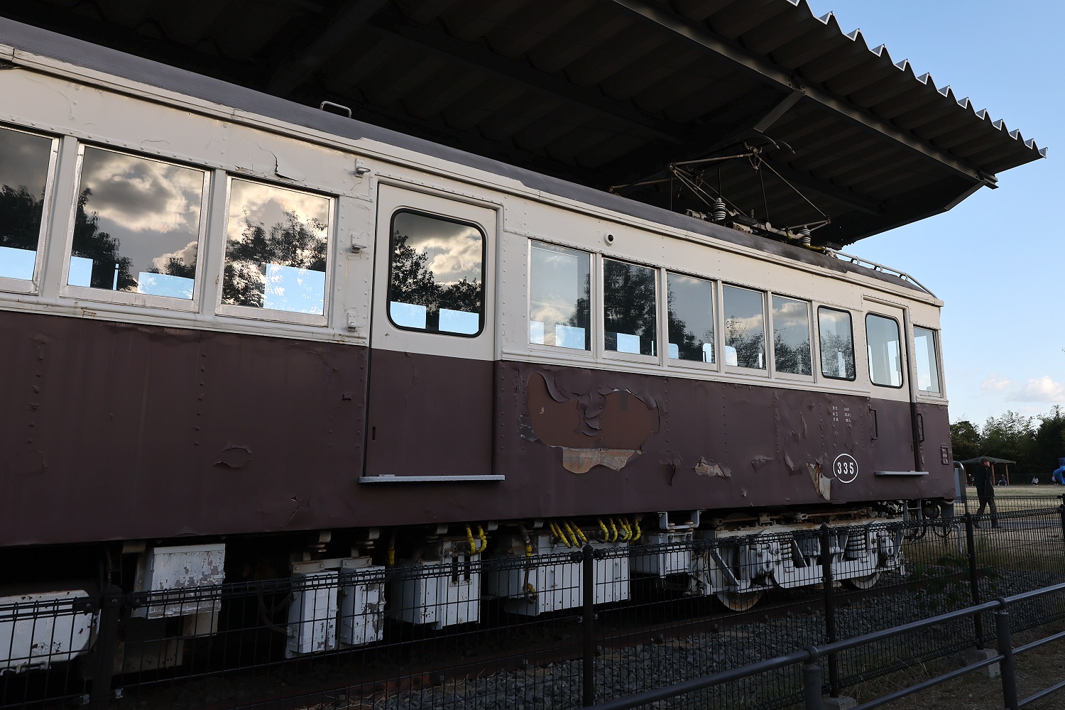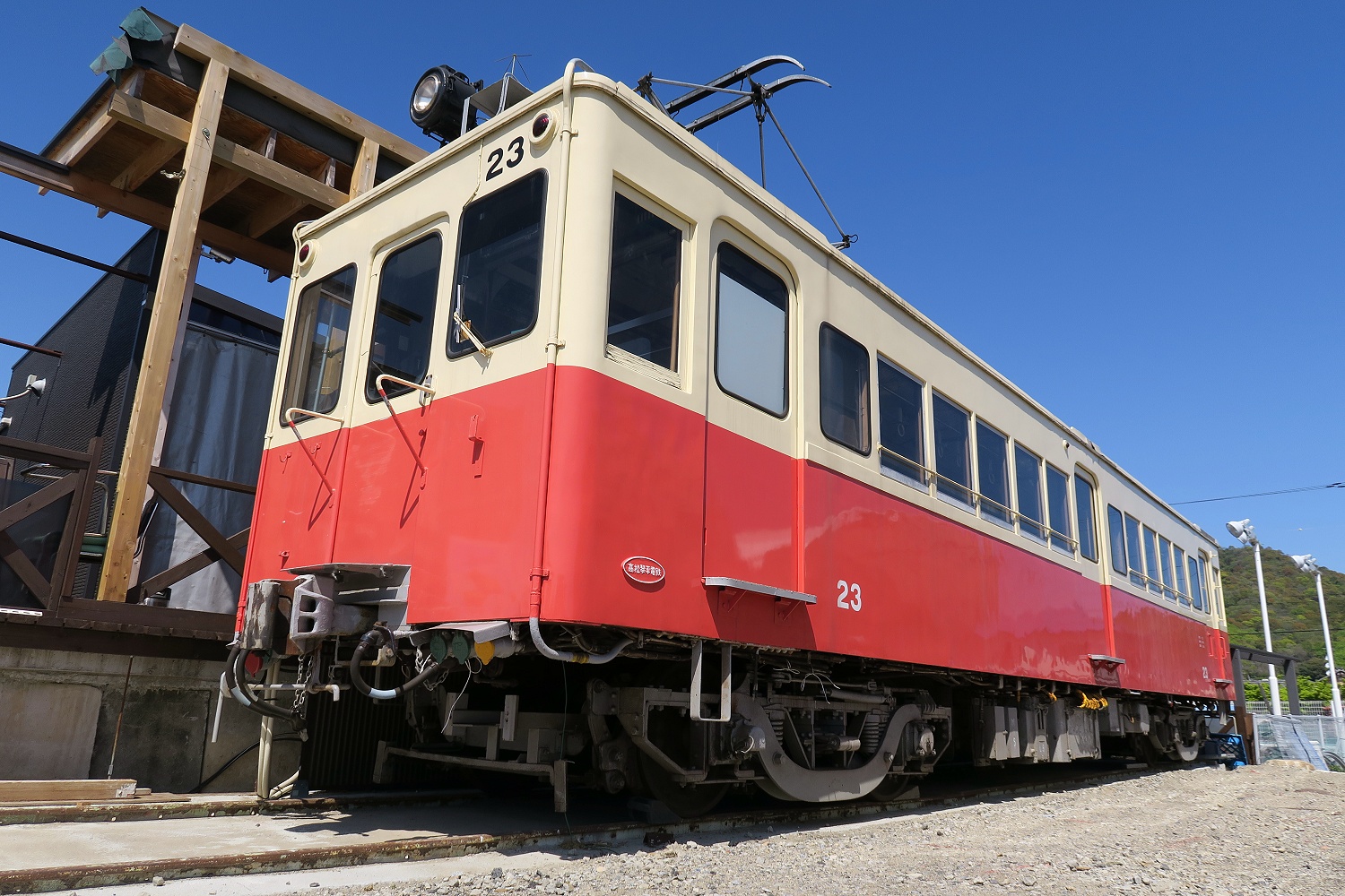 2021年4月に訪問した時は露天展示だった【琴電 23号】。2021.04.10.撮影。