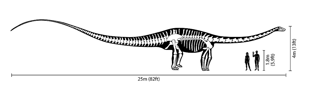 全長は約30m、体重は10トン超!【デイプロドクス】はラテン語で『二重の梁はりを持つモノ』を指し、脊椎骨が『二重梁はり』形状であったコトが由来。日本語では【梁竜りょうりゅう】と記します。