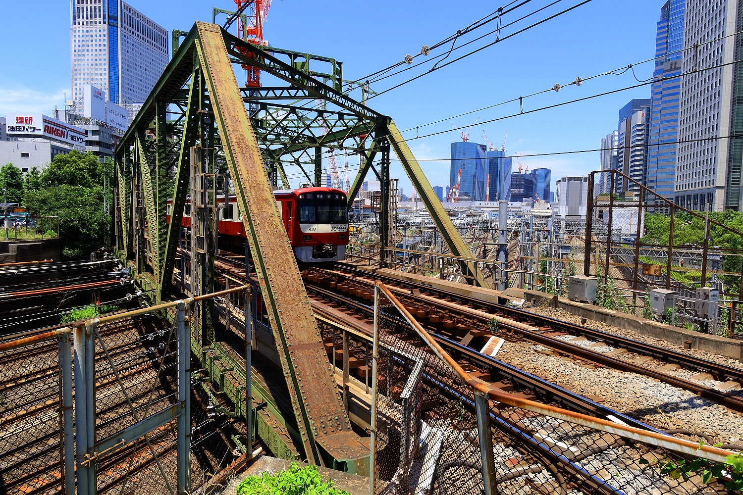 京急@八ツ山橋は1933年(昭8)に架けられたJR10本をまたぐ鉄道橋梁。