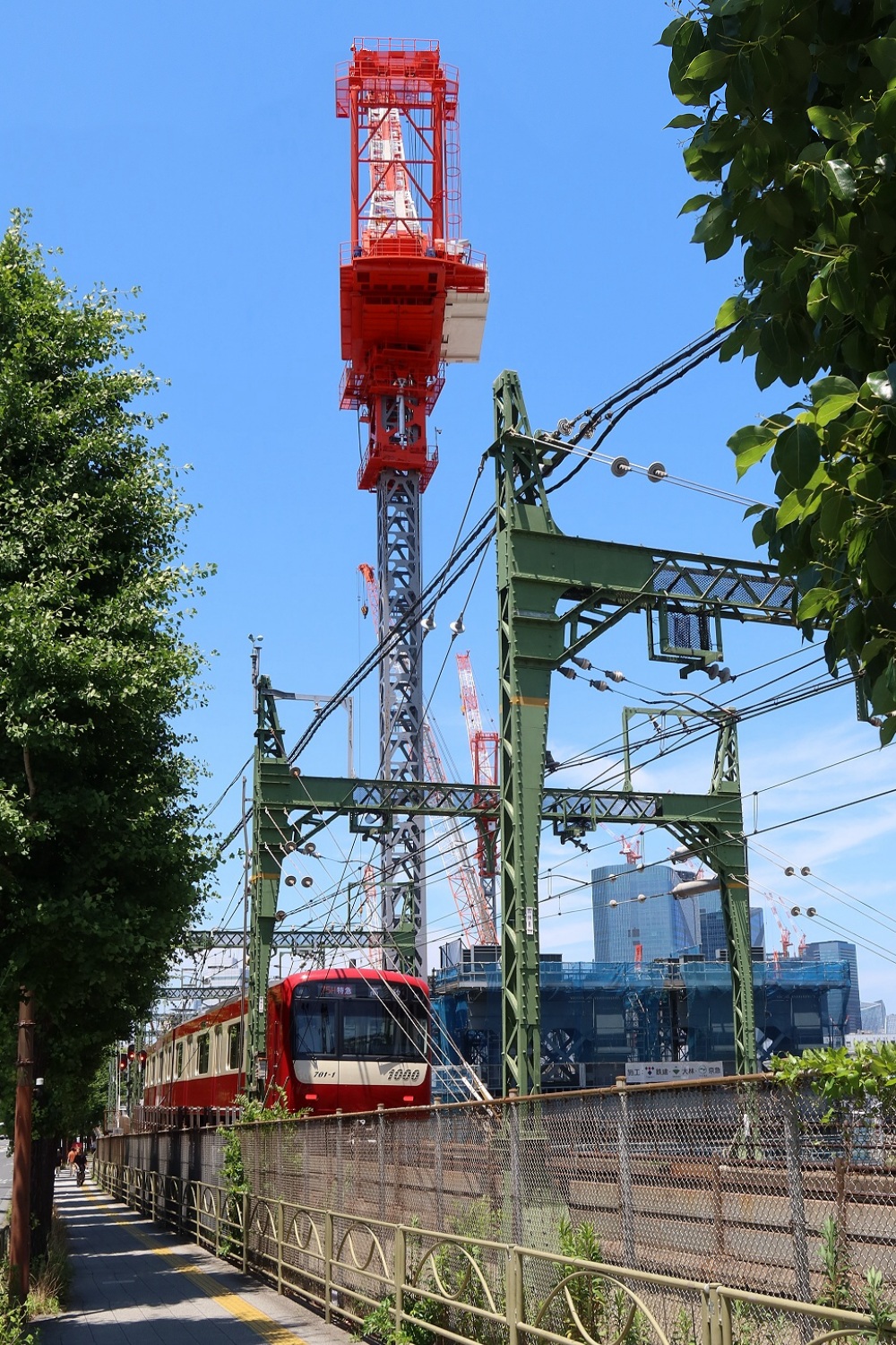白いトラス鋼体が新八ツ山橋@本体です。コレをJRをまたいで架けようとしてます。
